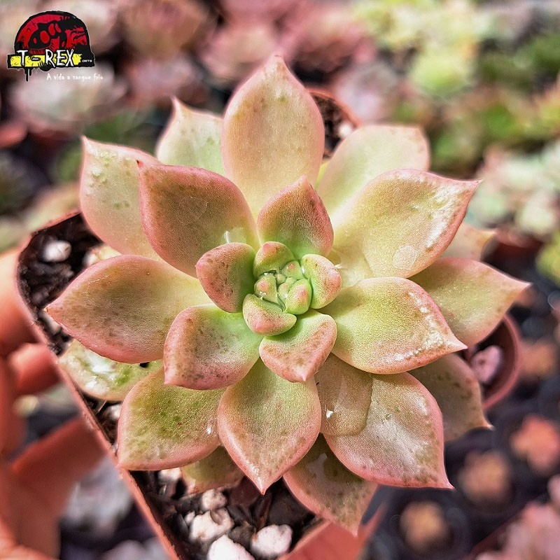 Originária de cruzamentos entre as famosas espécies Echeveria e Graptopetalum, a Graptoveria Ebony Mendoza se destaca pela sua resistência e facilidade de cuidado. Suas rosetas densas e compactas crescem lentamente, formando uma espiral visualmente cativante.